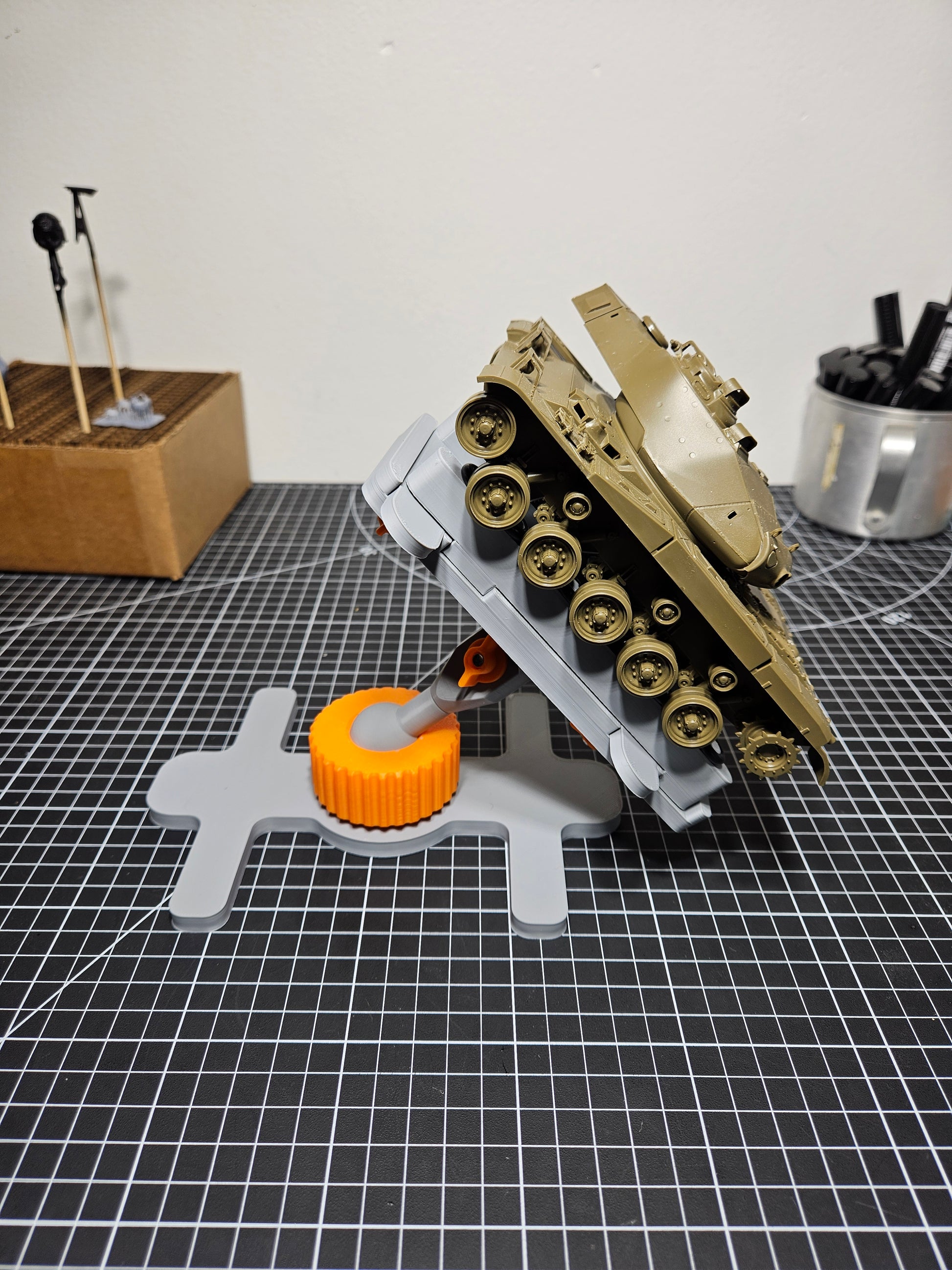 This fully adjustable model stand is designed for scale model tanks and tracked vehicles. The innovative O-ring contact points hold your model securely but are safe for delicately painted surfaces. No more worn out padding to fall off and allow the model to slip and slide around.
