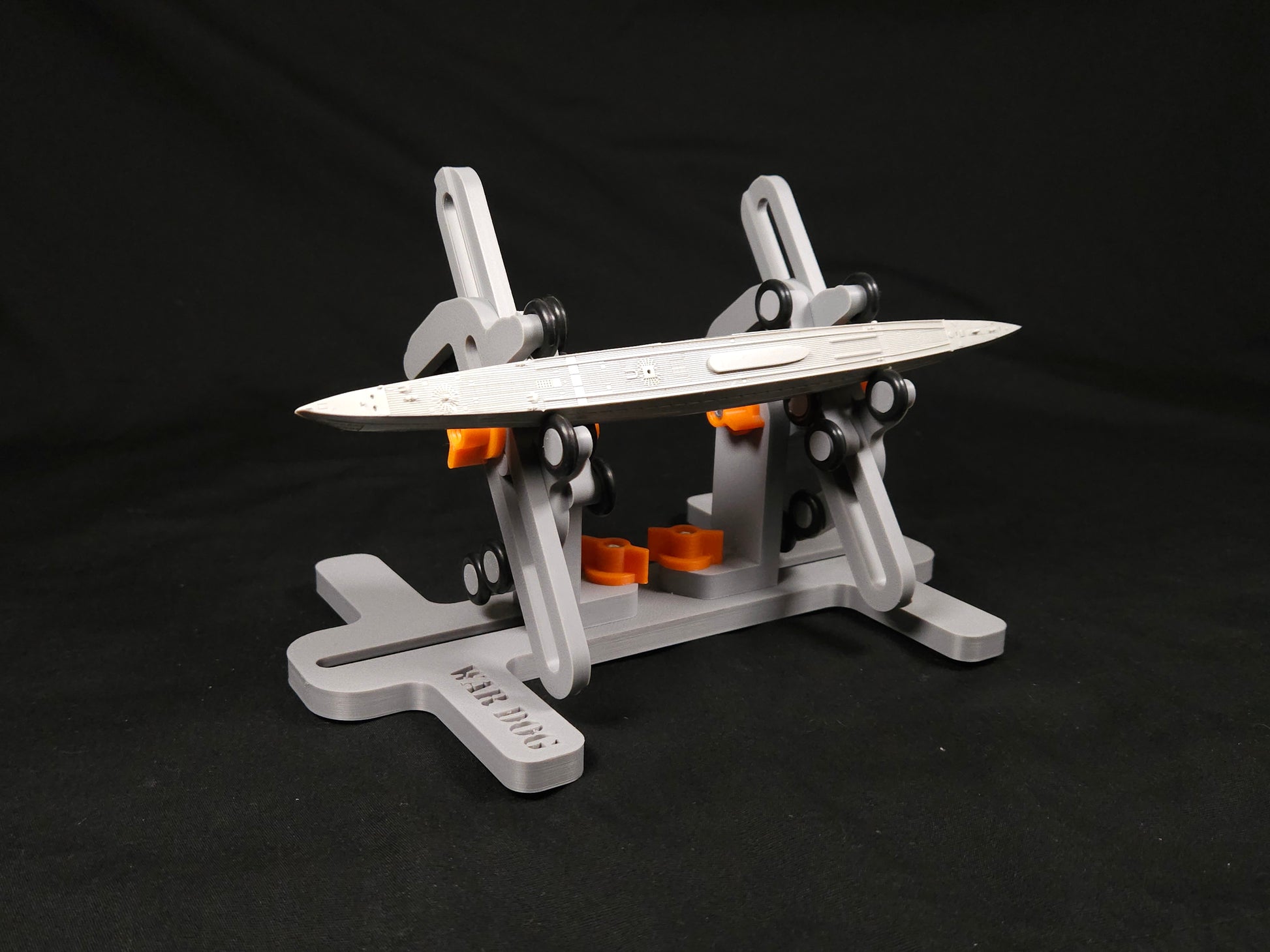 With a quick turn of the large adjustment knobs, it can be sized for both length and width. Additionally, the model can be tipped side to side for an optimal work angle. Flip the grippers over to allow you to hold on to smaller scale ships and submarines.